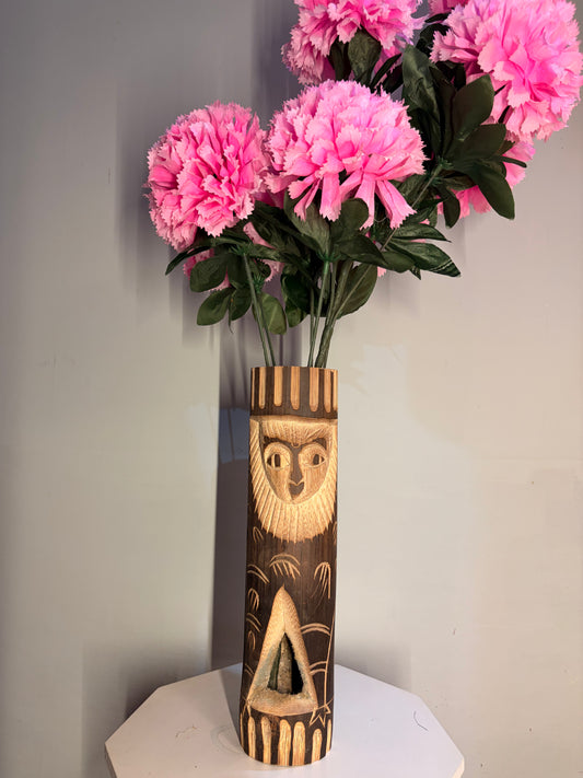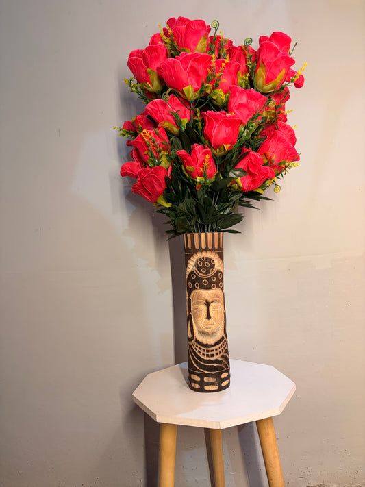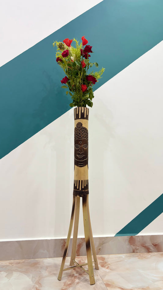 Handcrafted Bamboo Flower Holder – Buddha Face Design | 15-Inch Table Decor by Craftzee