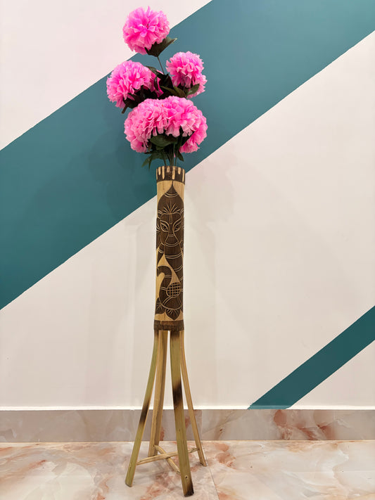 Handcrafted Shiv Face Bamboo Flower Stand – Divine Art-Inspired Floor Décor