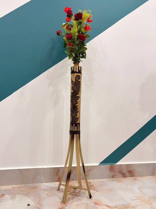 Handcrafted Bamboo Flower Stand with Floral Design – Eco-Friendly Floor Décor