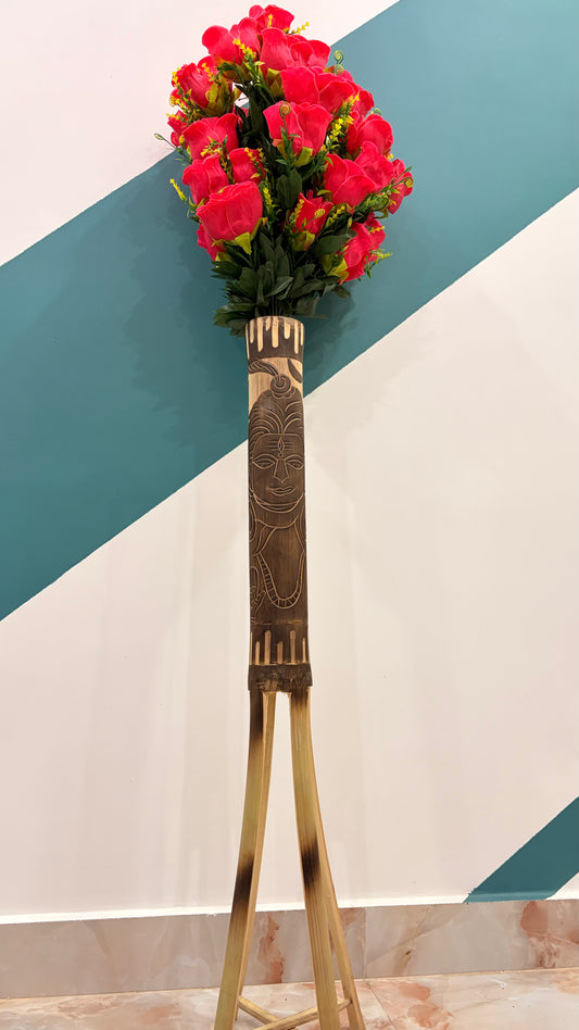 Handcrafted Shiv Face Bamboo Flower Stand – Divine Art-Inspired Floor Décor